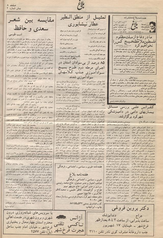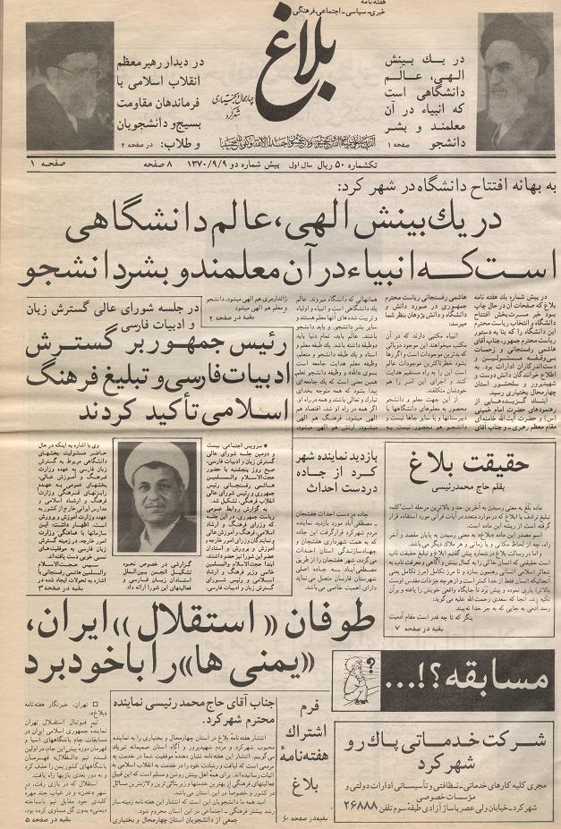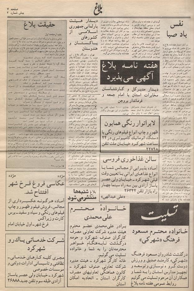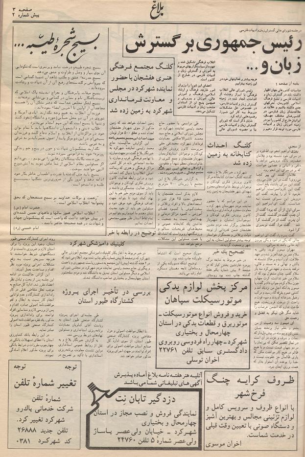 مطبوعات منتشره در شهرکرد،هفته نامه ی بلاغ(2)